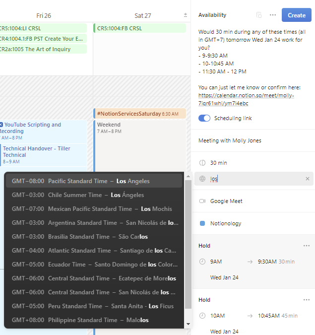With a single click, I adjusted the time-zone to Los Angeles, chose three suitable times, and sent it off. Within 24 hours, the Discovery Session was booked through Notion Calendar, bringing me one step closer to securing this client. Notion seems to understand human behavior better than we do. They realize we don't need every option (despite our perceptions). They understand the importance of accomplishing tasks in 1-3 clicks, and they recognize their need to make significant strides to compete with suites like Microsoft or Google.