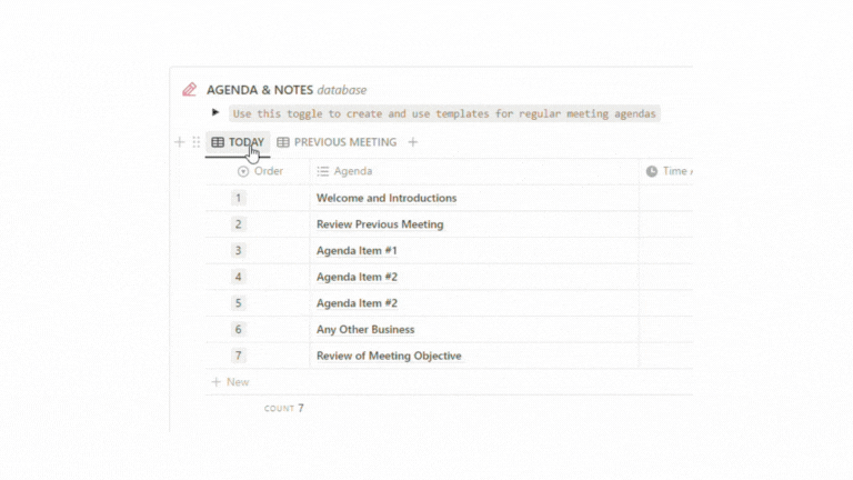 Need more assistance with your agenda preparation? Easily ask Notion AI to create a custom agenda directly within the solution.